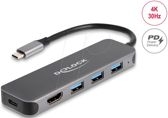 DeLOCK 3P USB Hub+4K HDMI+USB-C+PD 85W - 64171