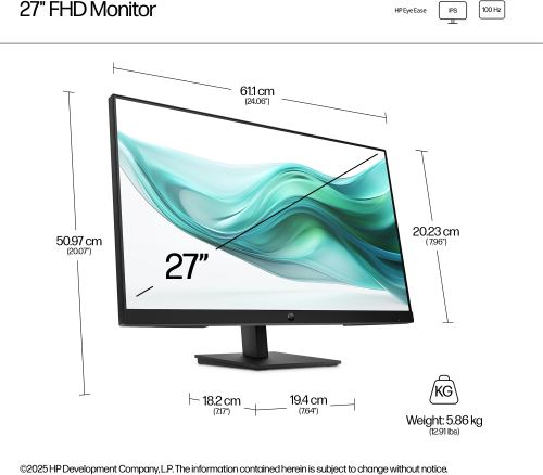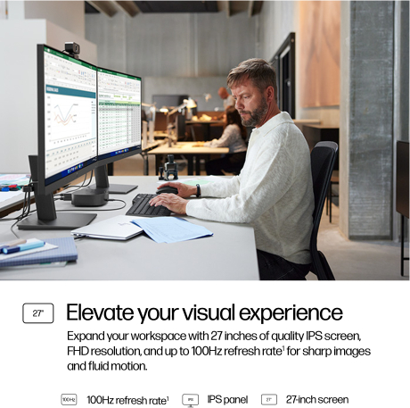 Product Highlights | - Expand your workspace with 27 inches of quality IPS screen, FHD resolution, and up to 100 Hz refresh rate[1] for sharp images and fluid motion.