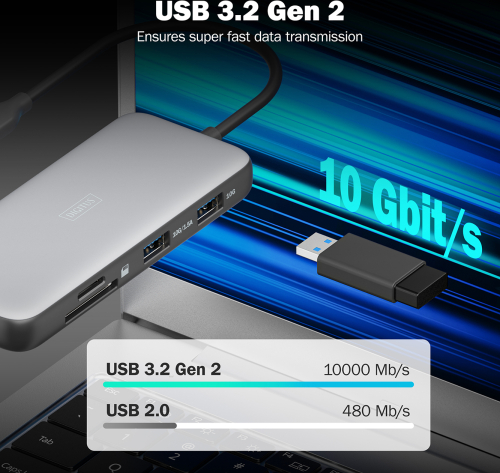 Digitus USB-C docking station, 8-port DA-70915 Ethernet LAN (RJ-45) ports 1 HDMI ports quantity 2