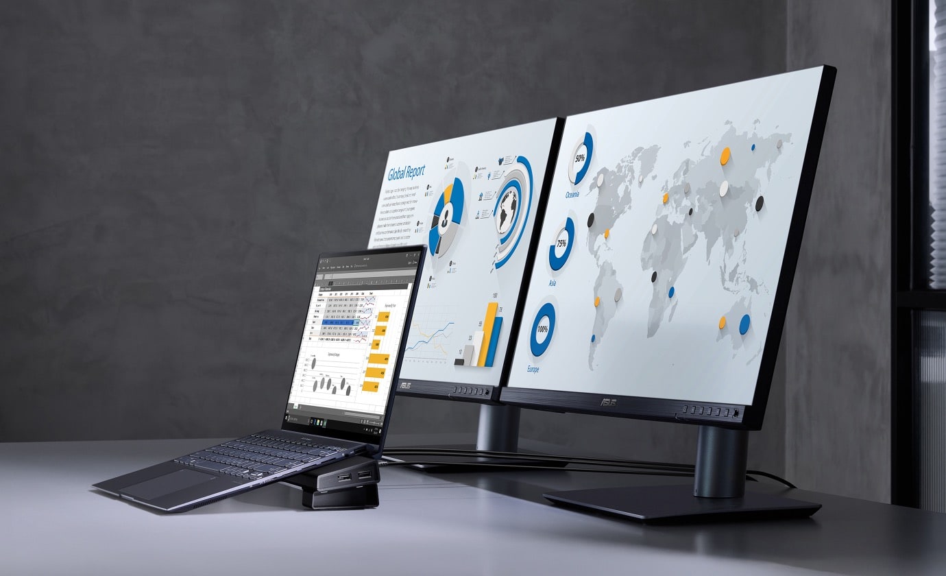 ASUS USB-C Stand Dock is a sleek and ergonomic 10-in-1 docking station designed for enhanced productivity. It serves as an adjustable stand, elevating laptops to an ideal position for comfortable viewing. A pair of HDMI® ports help extend screens across two 4K 60Hz displays, while four high-speed USB Type-A ports, 100W of charging power, and additional connectivity options transform any setup into an extremely versatile workstation.