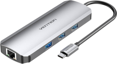 USB-C Docking Station to HDMI, 3x USB3.0, RJ45, SD, TF, PD 0.15m Vention TOKHB (gray)
