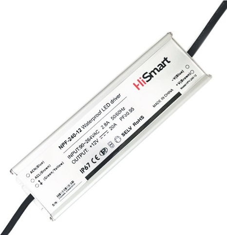 Barošanas bloks 12V, 20A, 240W, PFC, IP67. ĪpašībasBuilt– in power factor correction PFC. Dzesēšana: brīvgaisa konvekcija. Aizsardzība: īssavienojums / pārslodze / pārspriegums / over temperature. aizsardzības klase IP67 uzstādīšanai telpās un ārā telpām. SpecifikācijasType: switching Barošanas bloks. Ievades sprieguma diapazons AC: 90– 264V. Frequency 47– 63Hz. Izejas spriegums DC: 12V. Nominālā strāva: 20A. Nominālā jauda: 240W. strāva AC: 4A/115V, 2A/230V. Pulsācijas un troksnis: 150mV p– p. Efficiency: 90%. Noplūdes strāva: <0.75mA/240V AC. Darbības temperatūra: – 30°C~+60°C. Darbības mitrums: 20%– 90%RH. Izmēri: 249x69x39mm. Svars: 1.3kg. |