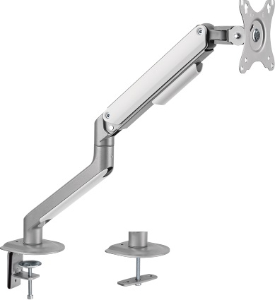 | Single monitor 17"-32" spring-assisted arm mount, silver Durable steel and aluminum construction supports most 17”-32” monitors up to 9kg. Desktop installation. Features: The flexible ergonomic design with finger-tip adjustment allows for effortless maneuvering and a wide range of motion to position screen height and angle. Integrated 180° rotation stop prevents the arm from hitting adjacent partitions and walls. Adjustable for either portrait or landscape orientation. Free-tilting for better viewing and reduced glare. Swiveling arms offer maximum viewing flexibility (makes every seat the best seat). Cable management creates clutter-free and more organized workplace. Practical desk clamp with screw fastening. Easy to mount on a table using grommet base. Two mounting options: both desk clamp and grommet are included. Specifications: Fit screen size: 17 - 32 inches. Load capacity: 9 kg. Screen quantity: 1. Tilt range: +55°~-55°. Swivel range: +90°~-90°. Screen rotation: +180°~-180°. VESA compatible: 75x75; 100x100. Dimensions: 117 x 503 x 578 mm. Arm full extension: 453 mm. Installation: desk clamp /grommet. Suggested desktop thickness: Clamp 10~80mm; Grommet 10~40mm. Color: silver. Material: aluminum, steel, plastic. Weight: 2.6 kg. Warranty: 12 months. ![]() ![]() ![]() |