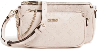 Guess, Dayane, Double, Textile Crossbody Bag, Blush, 24 x 13.5 x 4.5 cm, For Women
