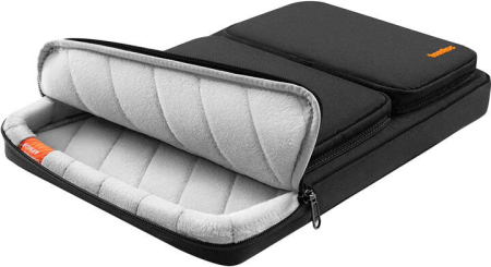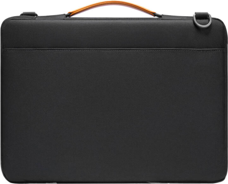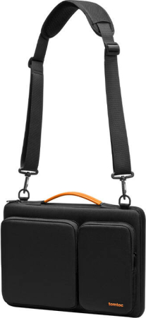 Laptop Briefcase 13,5-14'' Tomtoc Defender-A42 (black)Tomtoc Defender A42 is a briefcase/bag for laptops up to 14" - It has one large compartment two very roomy front pockets and a roomy back pocket. It was created with MacBook Pro and Air in mind, to which it was perfectly fitted. It opens only along one shorter side to provide greater protection. All edges, with special attention to the corners, are lined with shock-absorbing material. The briefcase meets the military standard MIL STD 810H-516.8 for drops. The interior of the case is padded with soft material and a thick layer of padding.