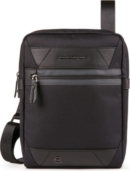 Piquadro, Trakai, Leather & Fabric, Small, Textile Crossbody Bag, Black, 27 x 21 x 5 cm, For Men