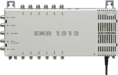 | Multi-switch 5 to 12; 47-862/4 x 950-2150 MHz; F-connectors; integrated psu 18 V/550 mA; Connection loss: SAT 12-7 dB/terr. 8-4 dB Technical details Colour of product Grey Plug and Play Yes Frequency range 47 - 862 MHz Ports & interfaces RF-connector F I/O ports 1 x terr., 4 x Sat-ZF, 12 x Sub. Weight & dimensions 1000 g Power Current consumption 25 mA Power consumption 25 mA Other Featuress Product dimensions (WxDxH) 295 x 148 x 43 mm Power requirements 198 - 253V AC Operational conditions -20 - 55 °C |