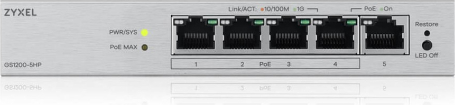 Zyxel GS1200-5HPV3 Managed L2 Gigabit Ethernet (10/100/1000) Power over Ethernet (PoE) Desktop Grey