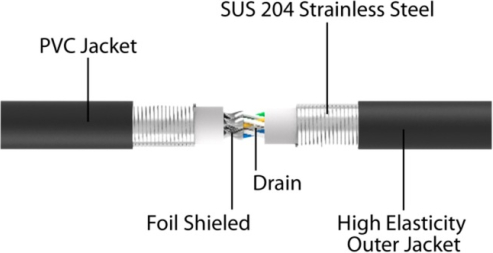 DeLOCK RJ-45 network cable Cat.6a U/FTP ultra flexible black, 15 meters, inner stainless steel jacket