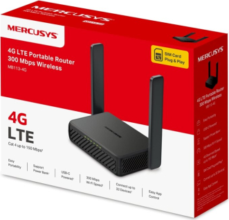 Mercusys MB113-4G Wireless 4G LTE Portable Router 802.11n Ethernet LAN (RJ-45) ports 2 300 Mbit/s Mesh Support No MU-MiMO No 4G