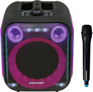 | Kompakts Party Box ballīšu skaļrunis ar iebūvētu Bluetooth moduli bezvadu mūzikas atskaņošanai no mobilajām ierīcēm un TWS funkcijas atbalstu – divu skaļruņu savienošanai pārī. Ierīcei ir USB un microSD atskaņotājs, kā arī FM uztvērējs. Sānu LED paneļi un priekšējā skaļruņa apgaismojums nodrošina neparastus apgaismojuma efektus. |
