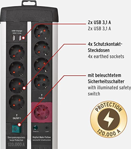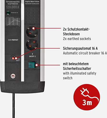 Brennenstuhl Premium-Protect-Line, 11-way duo, power strip (black/silver, 120,000A surge protection, 3 meters)