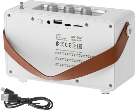 | 5 Hour playback (50% power); 2 Hour charging time; Analog FM frequency knob; AUX function; TWS function Connect 2 speakers to work as one; SD card playback; USB playback; MP3, Wav support; USB C charging More information: cr_1902w (external link) | ||||||||||||||||||||||||||||||||||||||||||||||||||||||