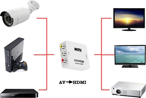 - Konvertē RCA signālu uz HDMI 1080p (60HZ) formātā