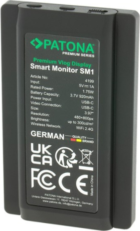 PATONA 4199 camera monitor 10.1 cm (3.97") Black 480 x 800 pixels Touchscreen