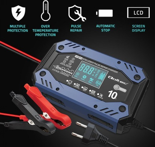 Qoltec 52482 vehicle battery charger 12/24 V Black, Blue