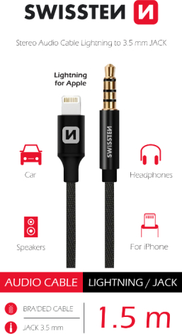 Swissten Textile Audio Adapteris Lightning / 3,5 mm / 1.5m