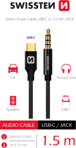 Swissten Textile Audio Adapteris USB-C / 3.5 mm / 1.5m