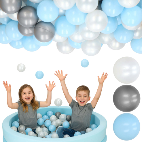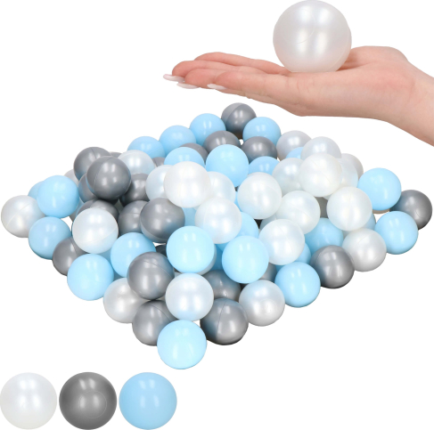 | Krāsainu bumbiņu komplekts bērnu rotaļām sausajos baseinos, telšu mājiņās vai rotaļu istabās. Izgatavotas no droša, netoksiska plastmasas materiāla. Izturīgas, elastīgas un piemērotas dažāda vecuma bērniem. |