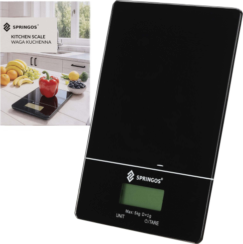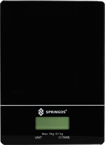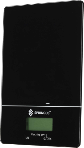| Springos HA7569 ir virtuves svari ar LCD displeju un skārienvadību, paredzēti precīzai sastāvdaļu svara noteikšanai mājas virtuvē. Tie ir stilīgi veidoti kombinācijā melnā un baltā krāsā ar stikla virsmu, nodrošina daudzveidīgas mērījumu funkcijas un ir aprīkoti ar protislīdēšanas pēdiņām, kas padara svaru stabilu uz galda virsmas.