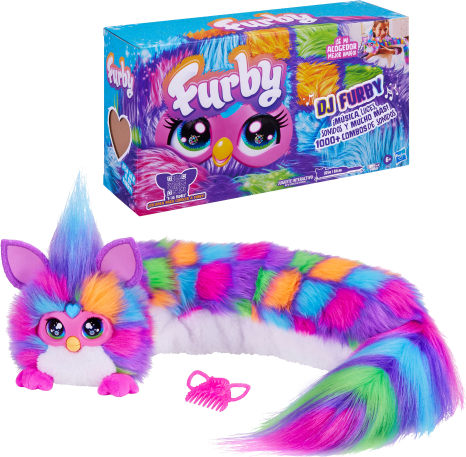 | DJ Furby rada ballīti ar mūziku, spēlēm, gaismām, jokiem un daudz ko citu. Ar 5 režīmiem un vairāk nekā 1000 iespējamām spēļu kombinācijām bērni paši nosaka noskaņu ar šo neticami interaktīvo plīša rotaļlietu. Var spēlēt solo vai kopā, vingrot ar jogas kustībām un baudīt krāsainus gaismu šovus, klausīties dziesmas angļu un Furbish valodā (Furby oficiālā valoda) un daudz ko citu. Lai sāktu, nospied sirds dārgakmeni, liec Furby uz muguras un pacel galvu, gandrīz kā kosmosa ūdrs! DJ Furby nav parasts elektroniskais mājdzīvnieks vai mīksta rotaļlieta – viņš ir lielisks draugs un ideāla dāvana 6+ gadus veciem bērniem. Izmērs: 81 cm. | ||||||||||||||||||||