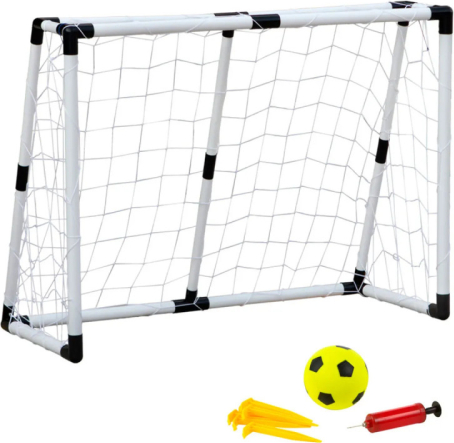 CB Toys Sport futbola komplekts ar vārtiem, bumbu un pumpi. Komplektā ietilpst viena 10,5 cm piepūšama futbola bumba, vieni melnbalti vārti ar tīklu (vārtu izmēri: 132x101x59 cm) un 8 dzelteni mietiņi vārtu nostiprināšanai pie zemes. Ieteicams bērniem, kas vecāki par 6 gadiem. Izbaudiet savu iecienītāko sporta veidu kopā ar CB Toys! - Noņemami futbola vārti ar tīklu un piepūšamu bumbu - Iekļauti 8 mietiņi vārtu noturēšanai un manuāls pumpis bumbai - Vārti ir baltā krāsā, to savienošanas elementi ir melni, un tīkls ir baltā krāsā - Āra spēle, ieteicama bērniem no 6 gadu vecuma - Izmēri: 131x59x101 cm Futbola vārti ar bumbiņu, pumpi un stiprinājumiem. Izmērus skatīt uz iepakojuma. Spēlēm telpās un ārpus tam. BRĪDINĀJUMI! Nav piemērots bērniem, kas jaunāki par 36 mēn! Komplektā sīkas detaļas! Savainošanās risks! Neizmantot tuvu satiksmei, ūdenstilpnēm un citās nedrošās vietās. Pirms rotaļlietu dodiet bērniem izņemiet to no iepakojuma. Ja uz tā ir svarīga informācija noglabājiet to bērniem nepieejamā vietā . Ražots Ķīnā. Importētājs: Colorbaby. S.L. Calle Cordoba 15. Pol. Ind. Altac I Aptdo. Correos 40, 03440 Ibi, Alicante, Spain, e-mail: info@colorbaby.es CE marķējums ir izstrādājuma ražotāja paziņojums, ka produkts atbilst tam piemērojamām Eiropas Komisijas direktīvu prasībām. |
