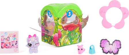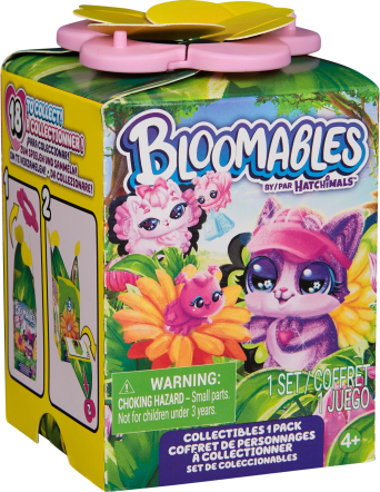 | Izbaudi burvīgu atklāšanas mirkli kopā ar Bloomables by Hatchimals Collectibles iepakojumu. Laipni lūdzam Bloomville – mīlīgo Bloomables labāko draugu mājvietā. Katram tēlam ir īpaši jaukas detaļas, spārni, rotaļīga poza un unikāls pārklājums, piemēram, metālisks, pērļains, neons un citi. Katrs iepakojums satur 1–2 tēlus, 4–6 aksesuārus, 1 Hatchi-Pics foto un Bloomville karti ar kontrolsarakstu. Lai sāktu atvēršanu, pacel zieda aksesuāru un atplēs katru nodalījumu, lai atrastu aksesuārus. Pēc tam izliec kastīti, lai tā "uzziedētu" par iebūvētu ziedu rotaļu laukumu. Iekšpusē atradīsi savu tēlu – iespējams, tevi gaida arī rets vai īpaši rets draugs. Atrodi draugus no Posey Park, Rosey Rock, Blossom Beach un citām vietām, kopā ar mīkstiem kukaiņu draugiem un rotaļu aksesuāriem: piena kokteilis, sērfinga dēlis, ģitāra un citi. Pēc rotaļām vari izlikt savu tēlu uz zieda aksesuāra. Savāc visus 18 Bloomables rotaļu tēlus (katrs tiek pārdots atsevišķi). | ||||||||||||||||||||