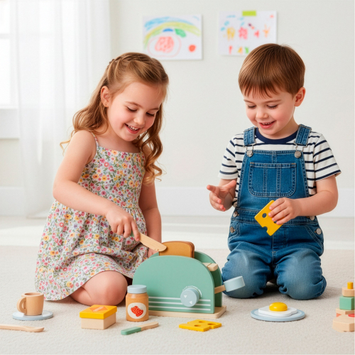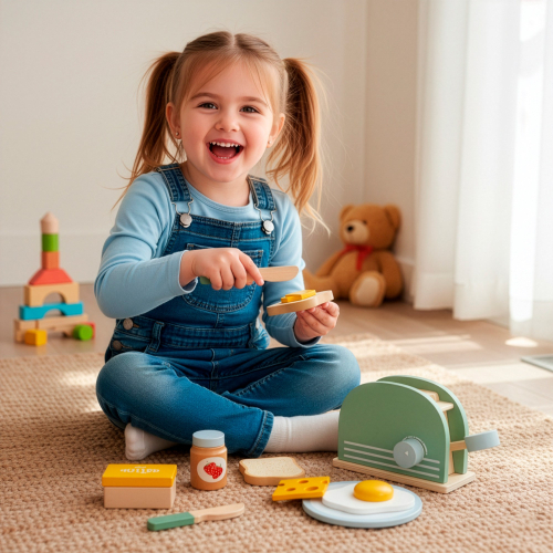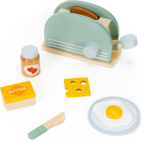 | Springos KG0054 ir bērnu rotaļlieta, kas imitē tostera / sēklmašīnas aparātu, ļaujot bērniem rotaļāties un “gatavot” dažādus brokastu ēdienus spēles veidā. Rotaļlieta veicina radošumu, motorikas attīstību un spēju imitēt ikdienas darbības, un tā ir izgatavota no dabīga, gludi apstrādāta koka bez kaitīgiem materiāliem. Pateicoties daudzajiem interaktīviem elementiem, bērni var kombinēt dažādas “pārtikas” detaļas, piemēram, maizi, sieru vai olas.