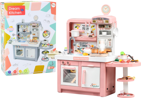 Dream Kitchen For Kids Lights Sounds Steam Accessories Pink ⭐ The Dream Kitchen is a dream set for every little cook, which allows for creative cooking fun. It contains numerous accessories and sound, light and steam functions that make the fun unique and authentic, and children can feel like real culinary masters! ⭐ KEY PRODUCT FEATURES ⭐ SPECIFICATION ⭐ SET CONTENTS Pots A charming pink color scheme that will appeal to young cooks. |
