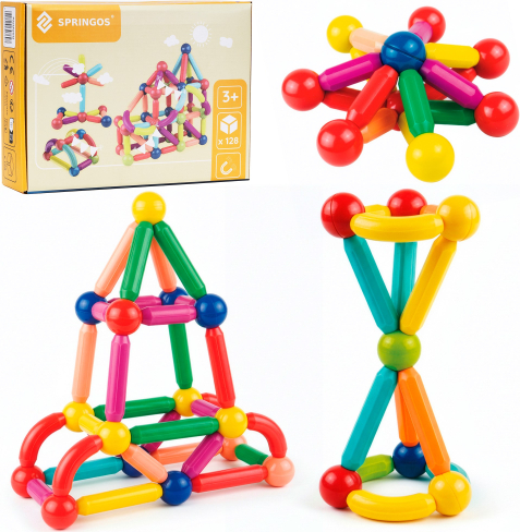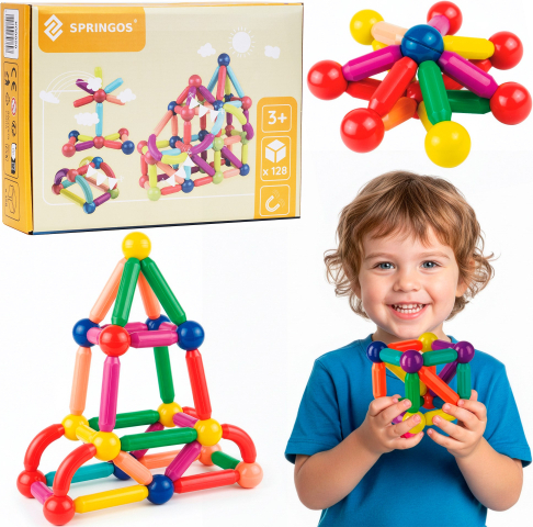 | Springos KG0050 ir daudzkrāsains magnētiskais konstruktora komplekts ar 128 daļām, kas piedāvā plašas radīšanas un būvēšanas iespējas. Daļas viegli savienojas, pateicoties iebūvētajiem magnētiem, ļaujot veidot dažādas formas, piemēram, mājas, torņus, tiltus vai transportlīdzekļus. Spēle veicina radošumu, loģisko domāšanu un smalko motoriku. Konstruktors izgatavots no droša plastmasas materiāla bez BPA un ar CE sertifikātu, nodrošinot drošu un ilgstošu spēli bērniem no 3 gadiem.