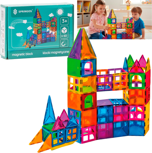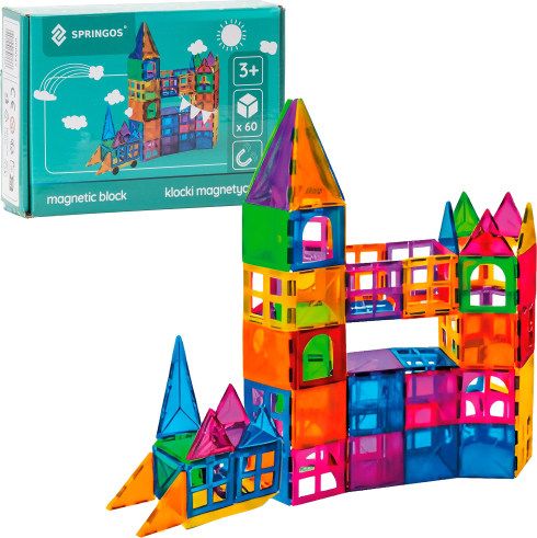 | Springos KG0047 ir magnētiska bērnu konstruktoru komplekts ar 60 daļām, kas paredzēts radošai spēlēšanai un konstrukciju veidošanai. Šie magnētiskie klucīši ļauj veidot dažādas 3D formas un modeļus, veicinot loģisko domāšanu, radošumu un motorisko attīstību.