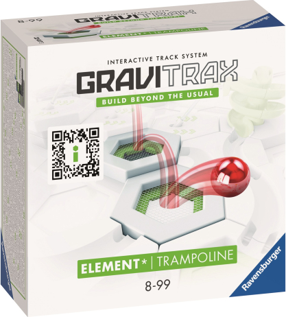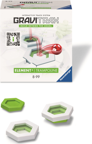 | With the GraviTrax Element trampoline, the ball bounces over the built GraviTrax track. In this way, obstacles and height differences on the track can be overcome impressively. If a ball falls onto the trampoline, it bounces directly to a higher level and defies gravity. Combined with any GraviTrax starter set, the Element trampoline brings completely new momentum and energy to the ball track.