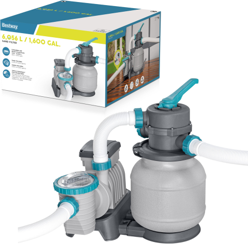 One of the best devices to purify your pool water is a sand pump. It is distinguished from an ordinary filter by the fact that sand is used for its operation, thanks to which it becomes more ecological. Regular pool filters should be replaced every 2 weeks, while quartz sand retains its properties up to a year. The pump has a 500 W motor, which allows it to achieve a capacity of 5678 liters per hour. The pump also has 6 different operating modes such as rinsing, washing, filtration, recirculation, draining and shutting down the device. The pump is also equipped with a chemical dispenser, which maintains the right amount of chlorine and ensures proper cleanliness of the water in your pool.