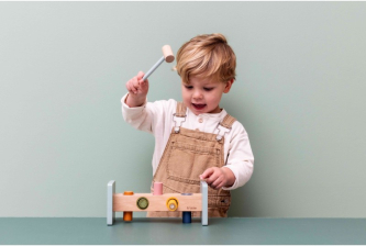 Trixie koka sitamā rotaļlieta ar āmuru, 18m+ Koka rotaļlieta, kas bērniem iemāca sist un trāpīt ar āmuriņu pa mērķi. Rotaļlieta griežas jebkurā virzienā, tāpēc, iesitot pa katru krāsaino koka stienīti, tas izlēks pretējā pusē. Līdz ar ko spēli ir iespējams spēlēt no visām pusēm. Lieliska nodarbe precizitātes trenēšanai, dzirdes stimulēšanai, acu-roku koordinācijas attīstībai un jautrai izklaidei! Kā arī šī spēle palīdz mazajam iepazīt krāsas. Produkta ražošanā ir izmantotas ūdens bāzes krāsas, kuras ir netoksiskas un drošas. Ieteicamais vecums: 18m+ Izmērs: 24x10x10 cm Sastāvs: FSC® MDF - FSC® dižskābarža koksne |