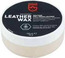 | GearAid 'Revivex' Leather Wax ir augstas kvalitātes ādas necaurlaidības un kondicionēšanas produkts, kas īpaši paredzēts visam pilngraudu ādas aprīkojumam, tostarp apaviem, segliem un citam. Izgatavots no 100% dabīgām sastāvdaļām, šis vasks nodrošina izcilu aizsardzību un barošanu jūsu ādas apģērbam.