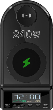 Blitzwolf BW-FW10 2xUSB-A, 4xUSB-C, 240W Charging Alarm ClockThe Blitzwolf BW-FW10 is not only a stylish alarm clock with dual alarm function, but also an advanced 10-in-1 charging station that offers up to 240 watts of output power. It will conveniently and safely charge all your devices - from smartphone to laptop - in one place.