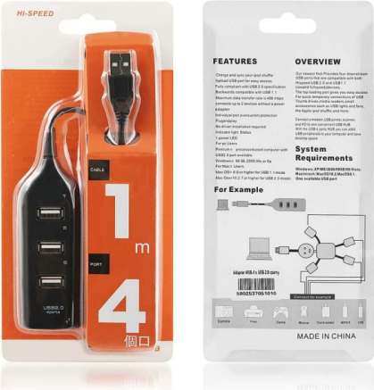 USB centrmezgls vai sadalītājs vairāku ierīču pievienošanai vienam USB 2.0 portam. | ||||