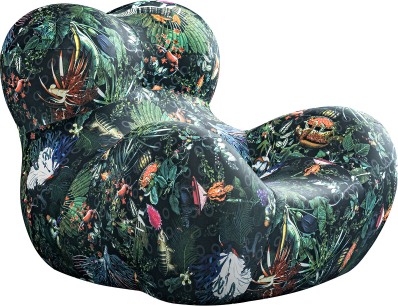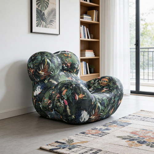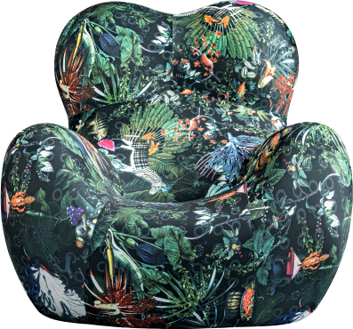Šis iespaidīgais atpūtas krēsls apvieno skulpturālu formu ar bagātīgu, dabas iedvesmotu rakstu. Dziļi zaļie toņi un sarežģīti botāniskie un dzīvnieku motīvi rada eksotisku džungļiem līdzīgu atmosfēru, kas jebkurai telpai piešķir dzīvību un raksturu.
