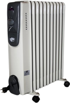 | Vienpadsmit sekciju eļļas radiators ar ritentiņiem ērtai pārvietošanai. Radiatoram ir 3 sildīšanas režīmi, automātiskā termostata kontrole, aizsardzība pret pārkaršanu un strāvas indikators. Radiatora platums 16 cm, garums 51.5 cm, augstums 65 cm, elektriskā vada 1.4 m, jauda 2000 W. |