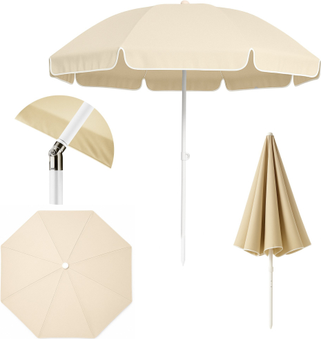 Extralink Black Forest Compact Beach Umbrella, 1.8m Beige