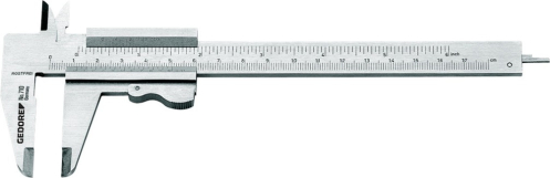 | The pocket caliper 710 from GEDORE is equipped with a scale with millimeter and inch graduations, vernier 1/20 and 1/128". The caliper with cross beak, ground beak ends, depth measurement and moment detection is suitable for external and internal measurements from 0 - 140mm as well as for depth measurements. The measured values can be fixed using a locking screw. There is a thread table on the back. The pocket caliper 710 is supplied with a leather case. Item no.: 1819634 Caliper type EAN 4010886655504 Manufacturer no. 710 Intended use For outdoor, indoor and depth measurements Measuring range 140 mm Scale division millimeters, inches Areas of application: house, workshop Feature With millimeter and inch graduations, vernier 1/20 and 1/128" Further information With crossbill, ground beak ends, depth gauge and moment detection Note Design according to DIN 862 Form A 2 Accessories available leather bag Weight 340 grams | ||||||