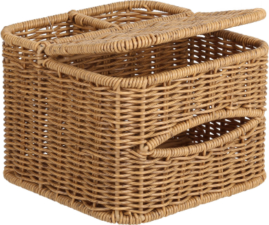 Materiāls: metāla rāmis, pārklāts ar plastmasas pinumu. Izmēri: 18 x 18 x 13,5 cm