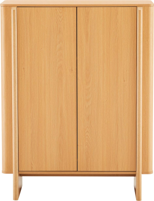 | Highboard MORBEN with 2 doors 100 x 42 x H130 cm, melamine with oak decor.