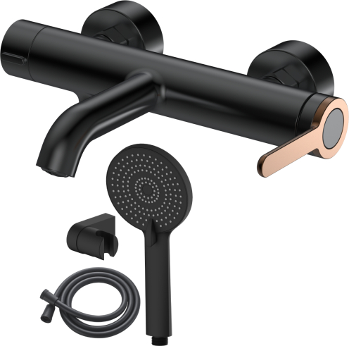 Jaucējkrāns vannas AB AMBER, ar dušas kompl., melns/zelts