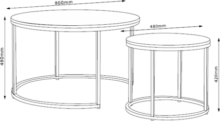 Galdu izmēri ir D80 x H48 cm un D48 x H42 cm.