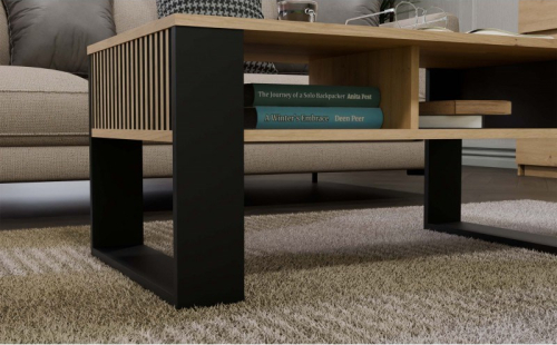 Top E Shop MODERN 2P SLIM ARTISAN COFFEE TABLE WITH BLACK LEGS