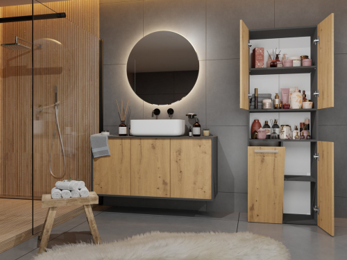 Top E Shop Topeshop NEL 1K DK ANT/ART KP bathroom storage cabinet Graphite, Oak