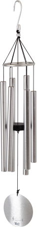 | Šis mūsdienīgi veidots vēja zvans ir piemērots ikvienai mājai. Sešas pārstrādāta alumīnija caurules ar izturīgu pulverpārklājumu vai anodējošu apdari. Biezā cauruļu siena rada ilgstošāku toni un skaņu. Ar viegli pakarināmo S veida āķi to var pakārt jebkur mājā. | ||||||||