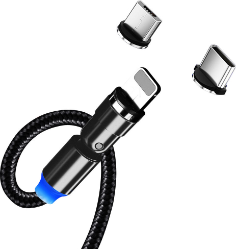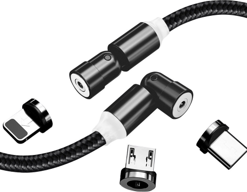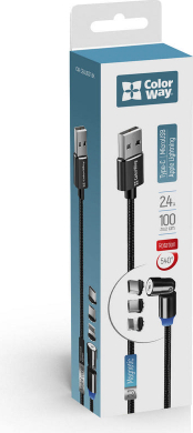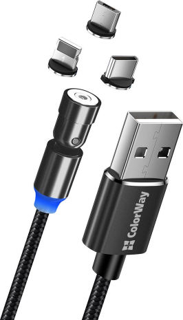 ColorWay Cable 3in1 (Lightning+MicroUSB+Type-C) Magnetic Rotation 540° 2.4А, 1m CW-CBUU037-BK