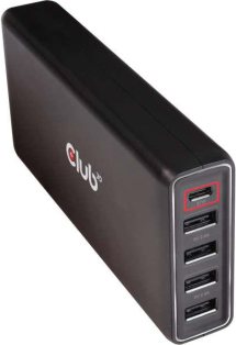 CAC-1903 - The Club3D CAC-1903 USB Type A and C, Power Charger, 5 ports up to 111W, with 4x USB Type A and 1x USB Type C connectors is designed for users who want to use only 1 Power Charger for their PC/Laptop/Tablet/Mobile phone as well as their docking station. It has a separate power cord for use into a wall socket.